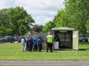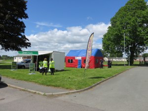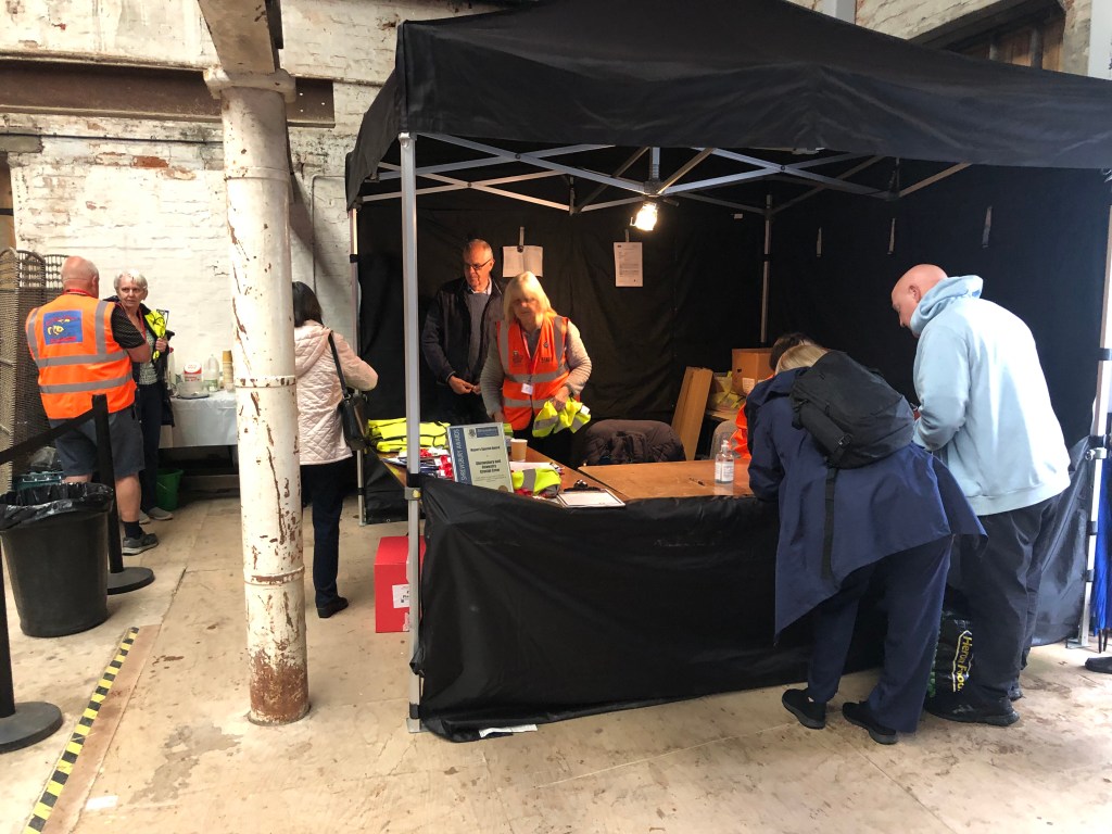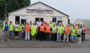 There are steps up to the Dye House at the rear of the Flaxmill.